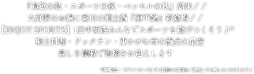 ※急遽貸切予約が入った場合、御食事処がご利用できない場合がございます。